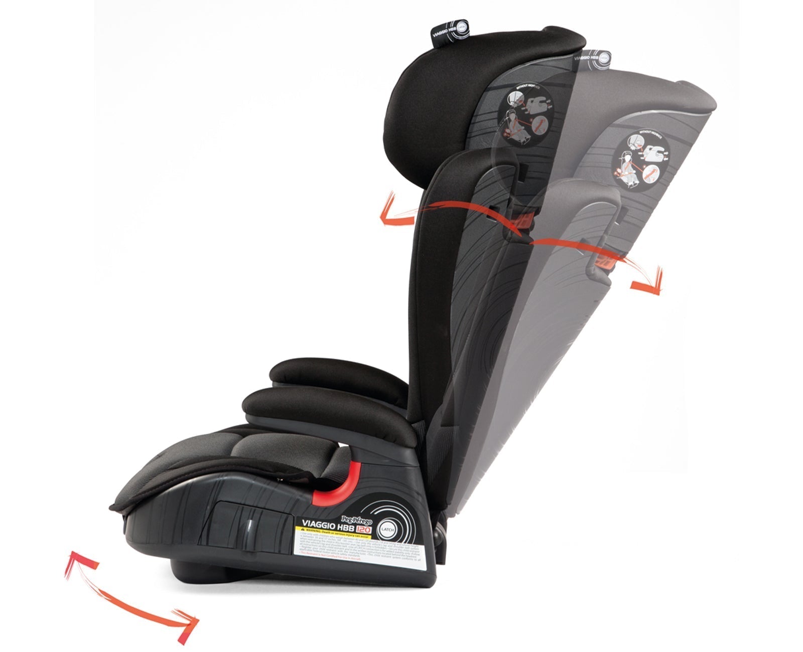 Ease of Use An easy access recline handle found at the front of the booster seat gives the ability to adjust the seat bottom and recline the Viaggio HBB on long journeys.