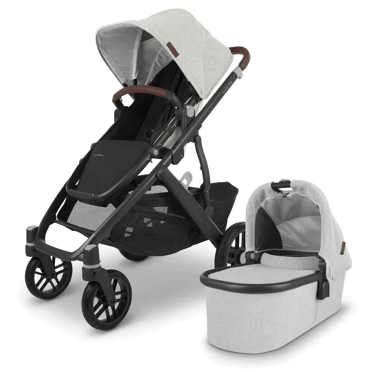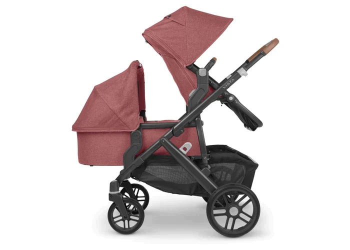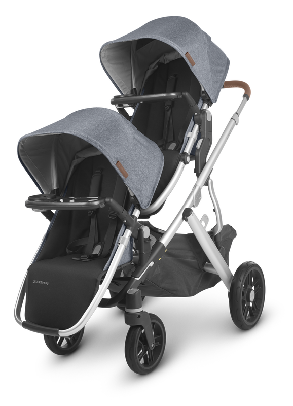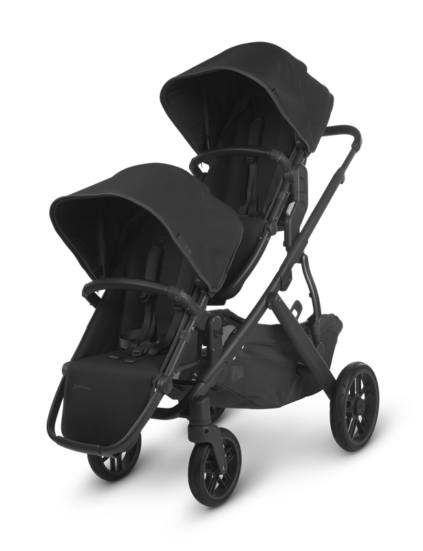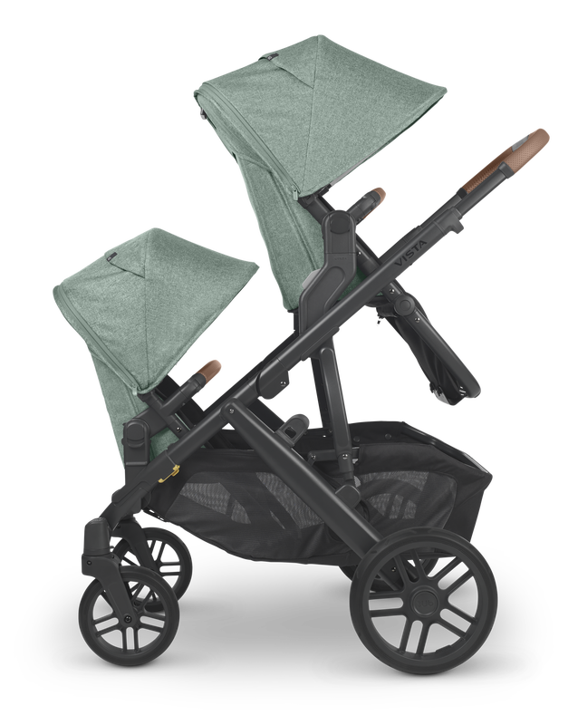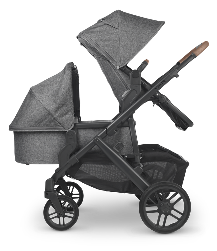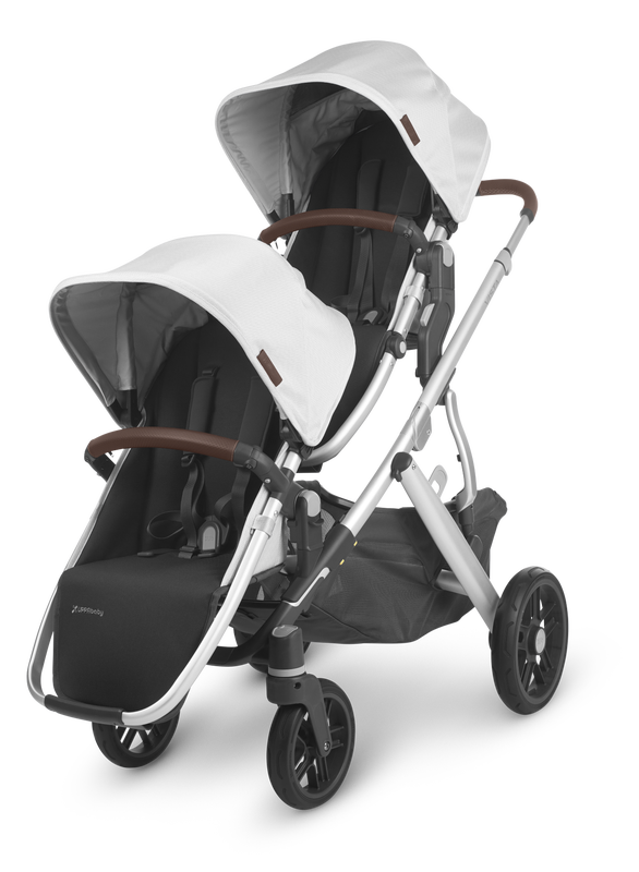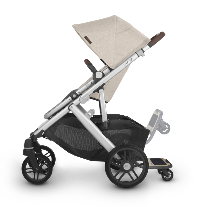 The UPPAbaby Vista V2 intuitive design allows for multiple configurations, making transporting a second and third child a breeze--all while strolling like a single.