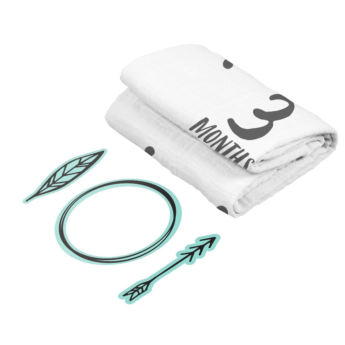 Use the included and trendy props to show everyone baby’s age! Once you’re ready to take baby’s monthly picture, lay baby down in the center of the blanket and use the prop of your choice to highlight baby’s age.