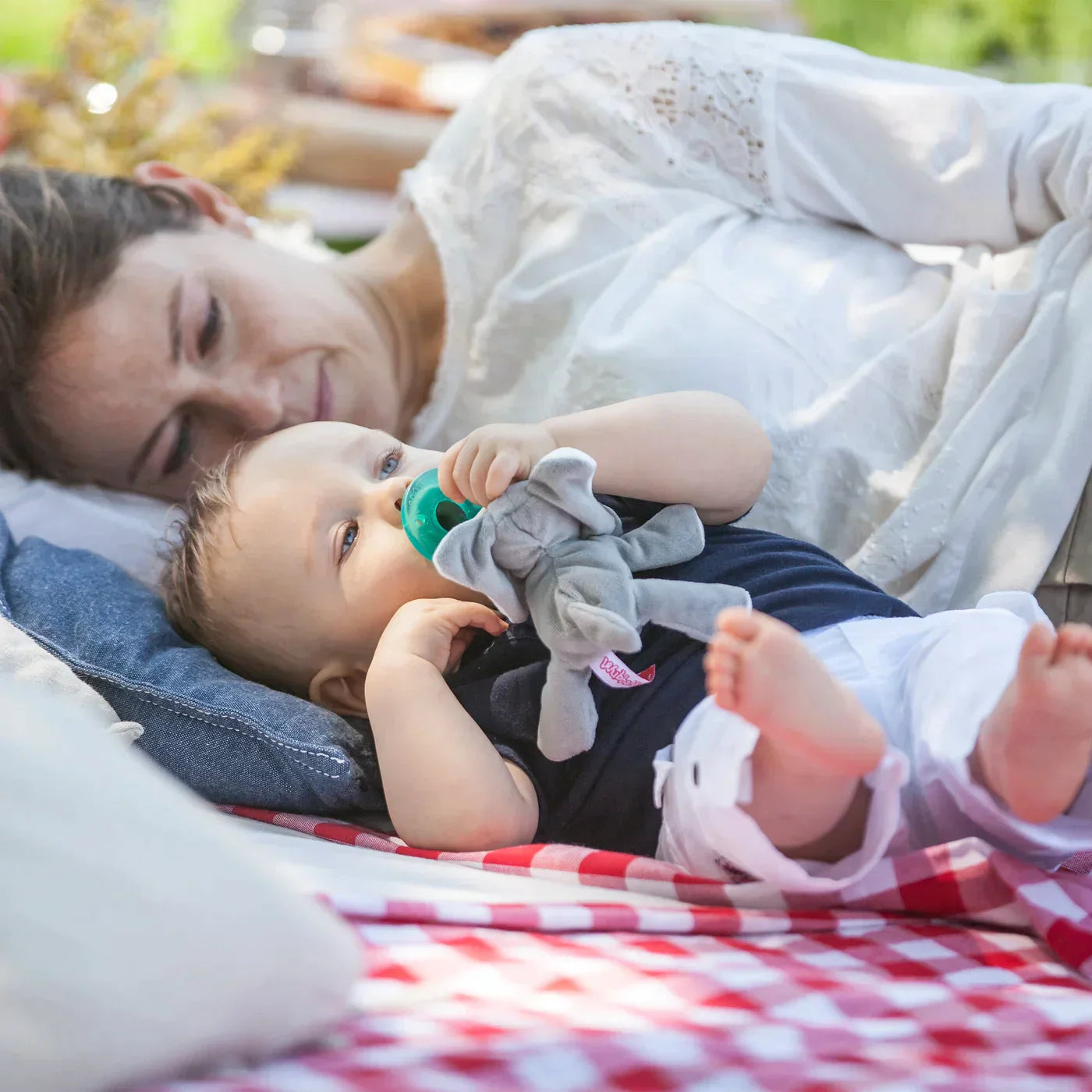 The carefully calculated weight and size of each stuffed friend keeps the pacifier positioned close to even the fussiest baby’s mouth.