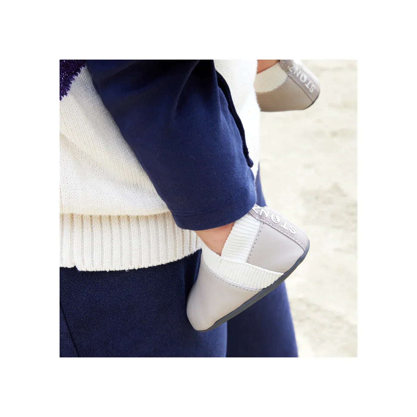 Soft and breathable, the Yale features a crossed knit cuff that’s easy to slip on but locks on baby’s ankles.